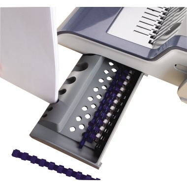 Das Quasar+ 500 Plastikbindegerät eignet sich für die häufige Verwendung im Büro. Die benutzerfreundlichen Funktionen von Quasar+ 500 ermöglichen unkompliziertes, effizientes Binden, z.B. sorgt der einstellbare Randanschlag für exakte Ausrichtung des Papiers und das Aufbewahrungsfach mit Binderücken-Messfunktion für die einfache Auswahl des passenden Binderückens. Das Stanzrestefach öffnet sich automatisch wenn es geleert werden muss.